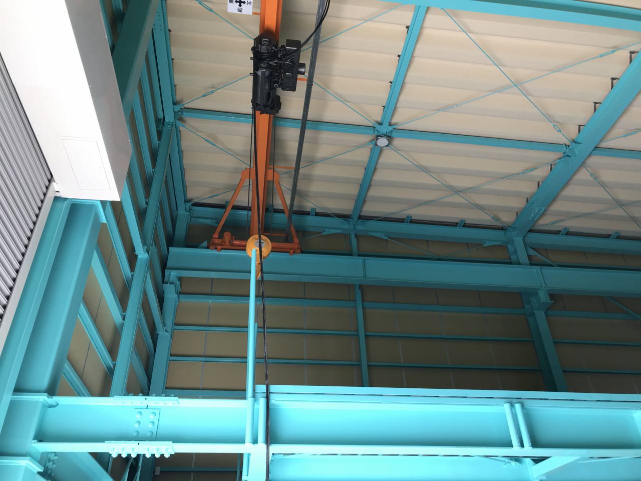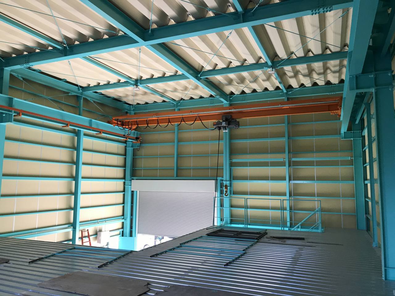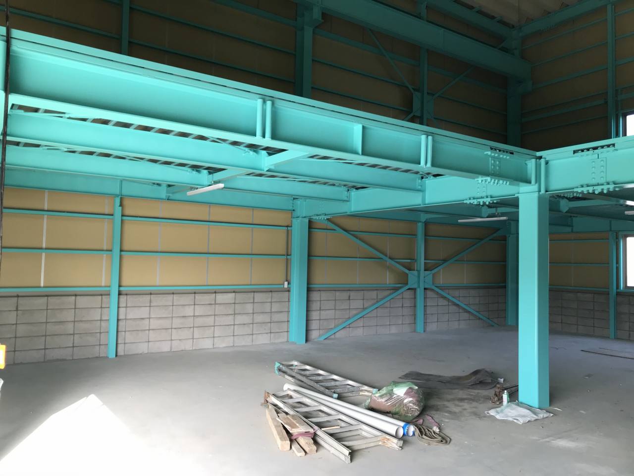 内装は表しの鉄骨をターコイズブルーで着色しアクセントとしました。