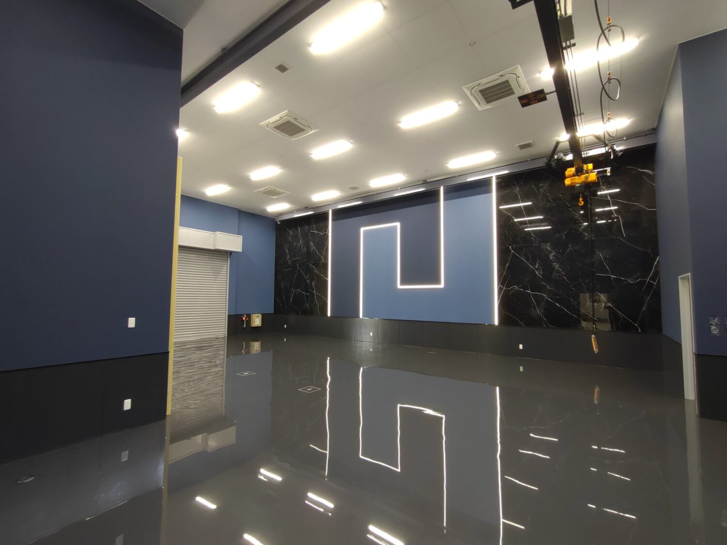 作業場は2部屋あり、1部屋は外観デザインに合わせダークトーンとしました。