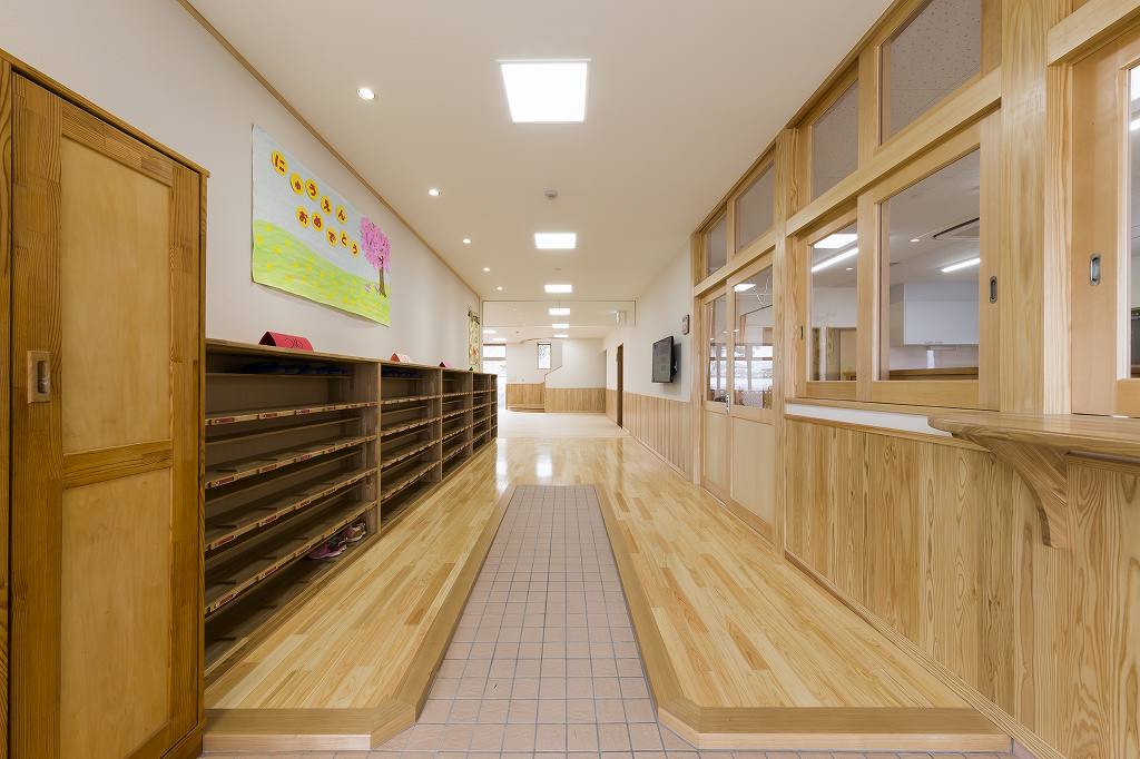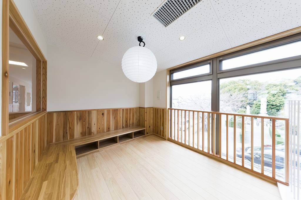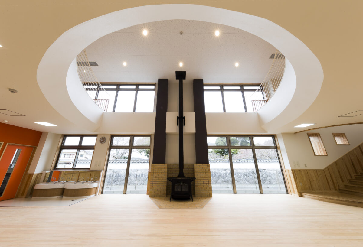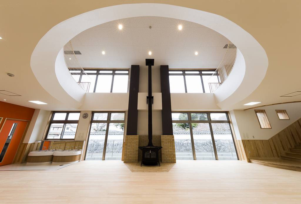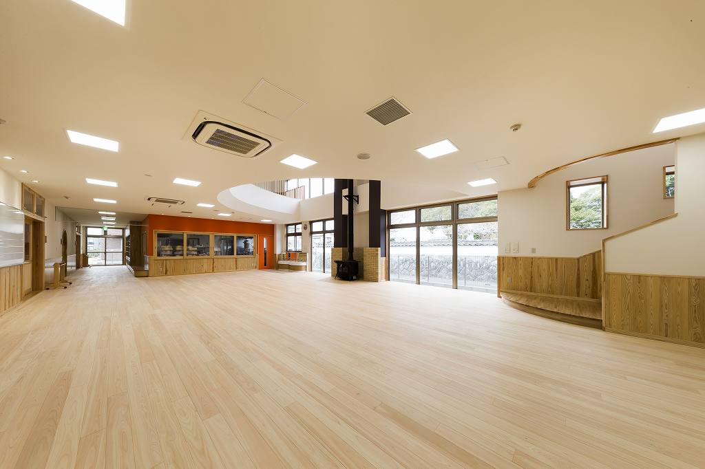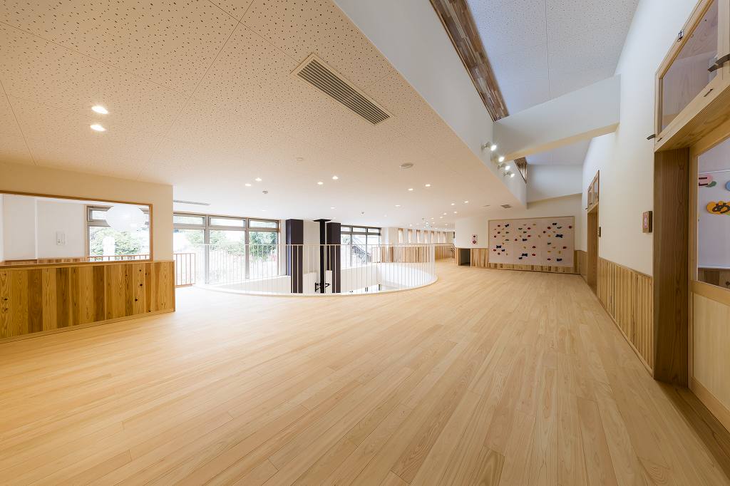 子供が走り回れるような大きなホールを設け、明るく楽しい空間としました。